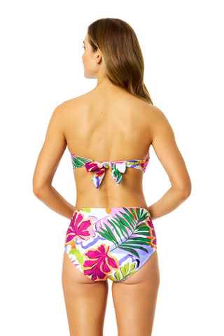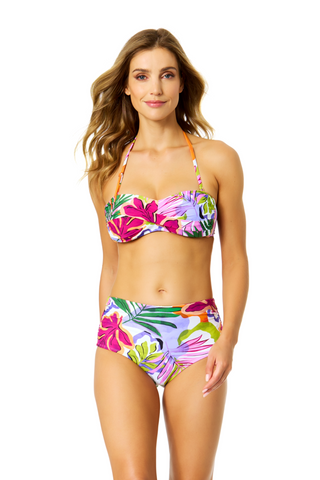Women's Mod Tropical Fold Over High Waist Shirred Bikini Swim Bottoms