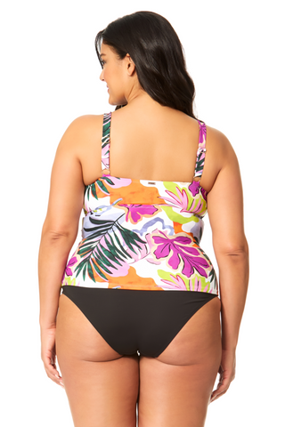 Women's Plus Mod Tropical Hidden Underwire Drape Front Tankini Swim Top