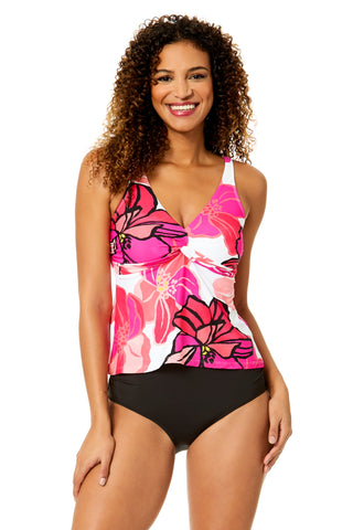 Women's Live In Color Orchid Twist Front Underwire Tankini Swim Top