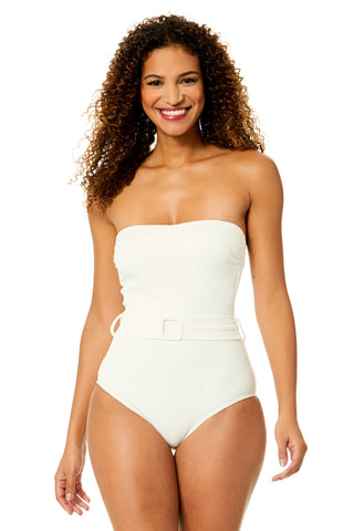 Women's Peruvian Crepe Light Ecru Strapless Belted One Piece Swimsuit